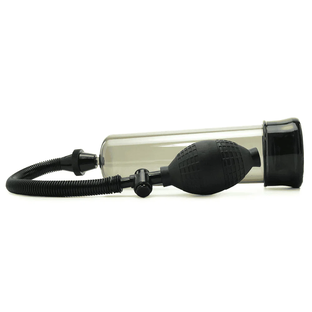 Pumps can be intimidating when starting off but the Beginner's Penis Pump is the ultra-sleek, user-friendly tool for you. This toy is a classic cylindrical chamber that produces gentle yet powerful suctions, accompanied by a soft stretchy silicone sits at the base of the opening for comfort and protection during usage. The medical-grade silicone ball is a manual use pump in which you squeeze to your desired pressure to help with ease of use. As another added safety feature a quick release valve is available on the side of the ball pump to eliminate pressure with a single touch. The Beginner's Penis Pump is ready to help you explore a side of toys you've never seen before.