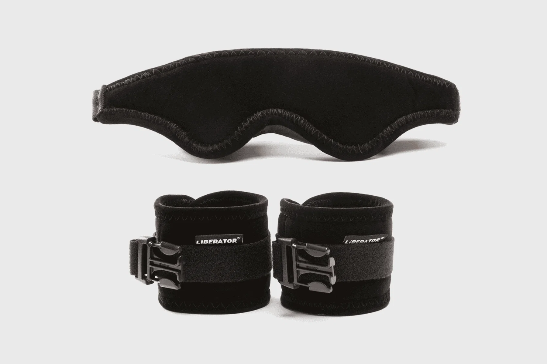 For a more Liberated experience try the Black Label Liberator Wedge Sexual Furniture which comes with wrist cuffs, a blindfold, cuff connectors, and two tethers.