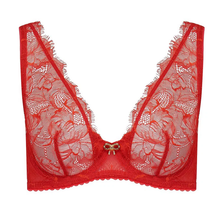 Mimi Holliday Hide & Seek Shoulder Bra. Playful, provocative, and breathtakingly beautiful, this gorgeous bra from Mimi Holliday will be a favourite in the bedroom. The Hide & Seek Shoulder Bra features crimson lace in a unique plunging shoulder cut that provides not only support but a highly flattering shape on all cup sizes. With adjustable straps, a back hook-and-eye closure, and a petite gold accent charm at the front, this beautiful bra from Mimi Holliday is a seductive favourite.