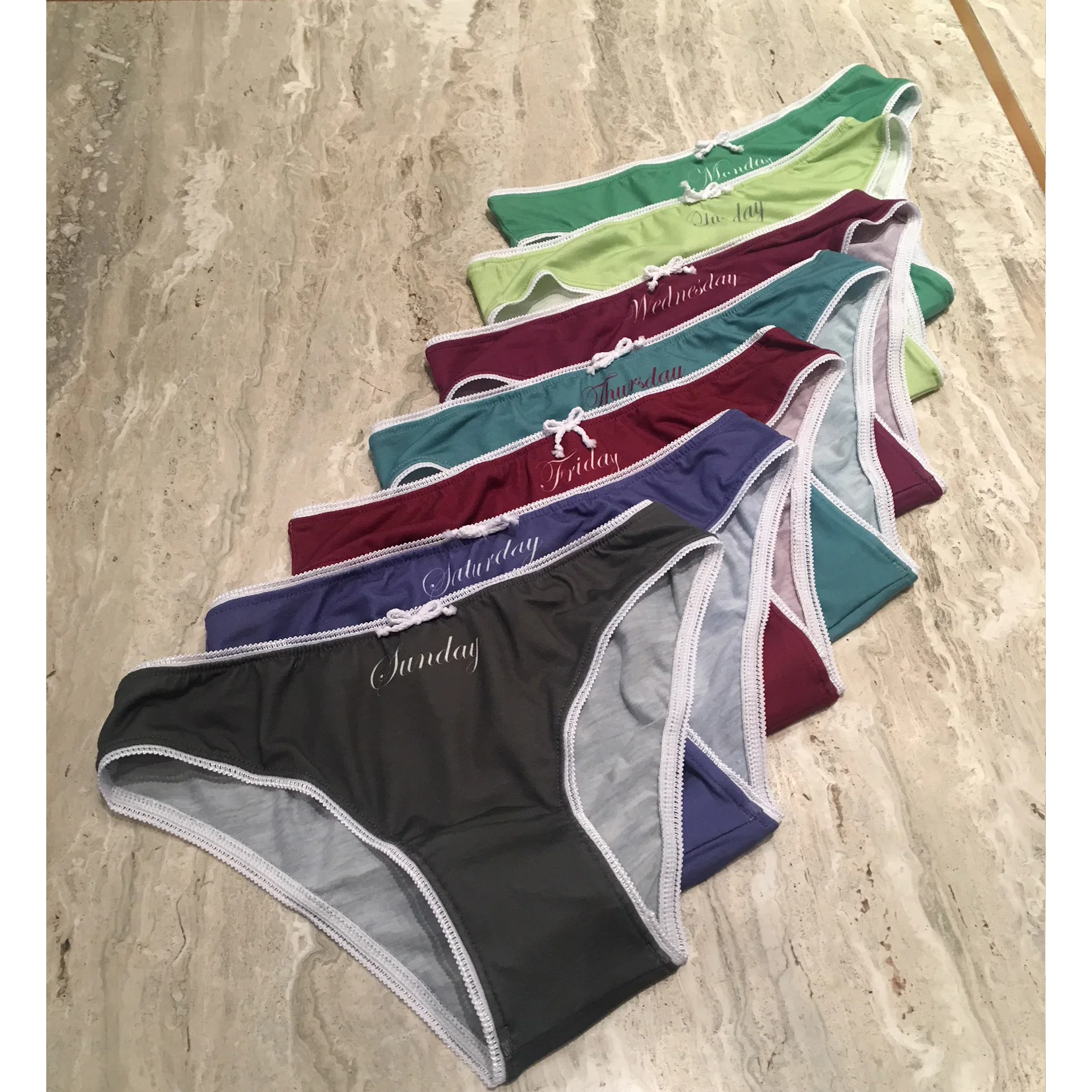 Feel fab and flirty 7 days a week with the Noblesse Oblige Days of the Week Panty Set! This deluxe collection features 7 pairs of ultra-soft, white-trimmed mini briefs in a range of luscious colours. Each day of the week is written in a flowing script on the front to ensure you stay on schedule! Whether you're counting down the days to that hot date or simply looking for a whimsical addition to your panty drawer, these comfortable yet adorably flirty briefs will take you from Monday to Sunday in style!