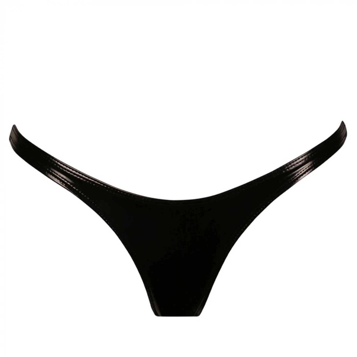 The S Vinyl Thong is a must in your wardrobe. It has a beautiful triangle cut that will highlight your buttocks, leaving your cheeks out for a spanking.