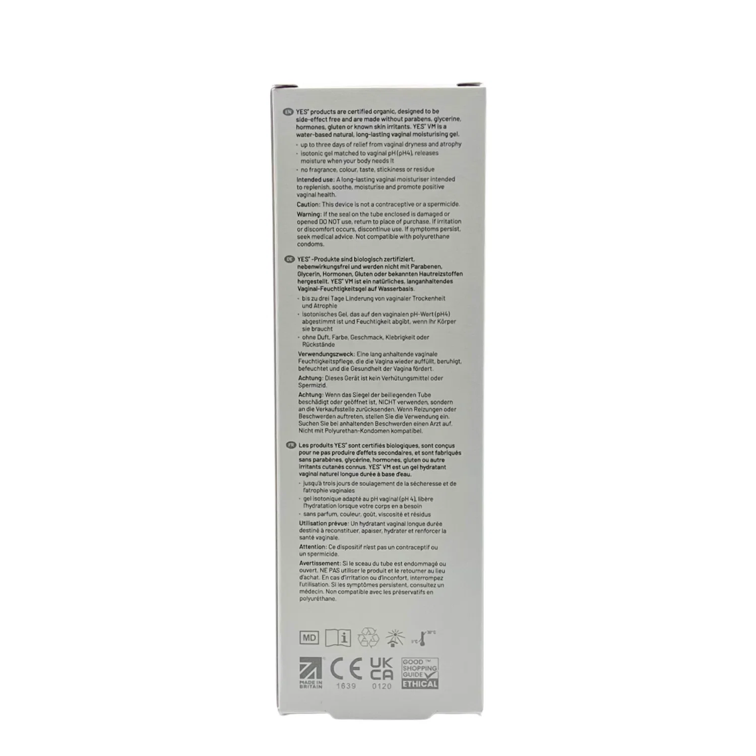 YES VM is a long-lasting natural Organic vaginal moisturising gel. Designed to match the typical vaginal environment with none of the skin damaging or concerning chemicals typically found in vaginal moisturisers.